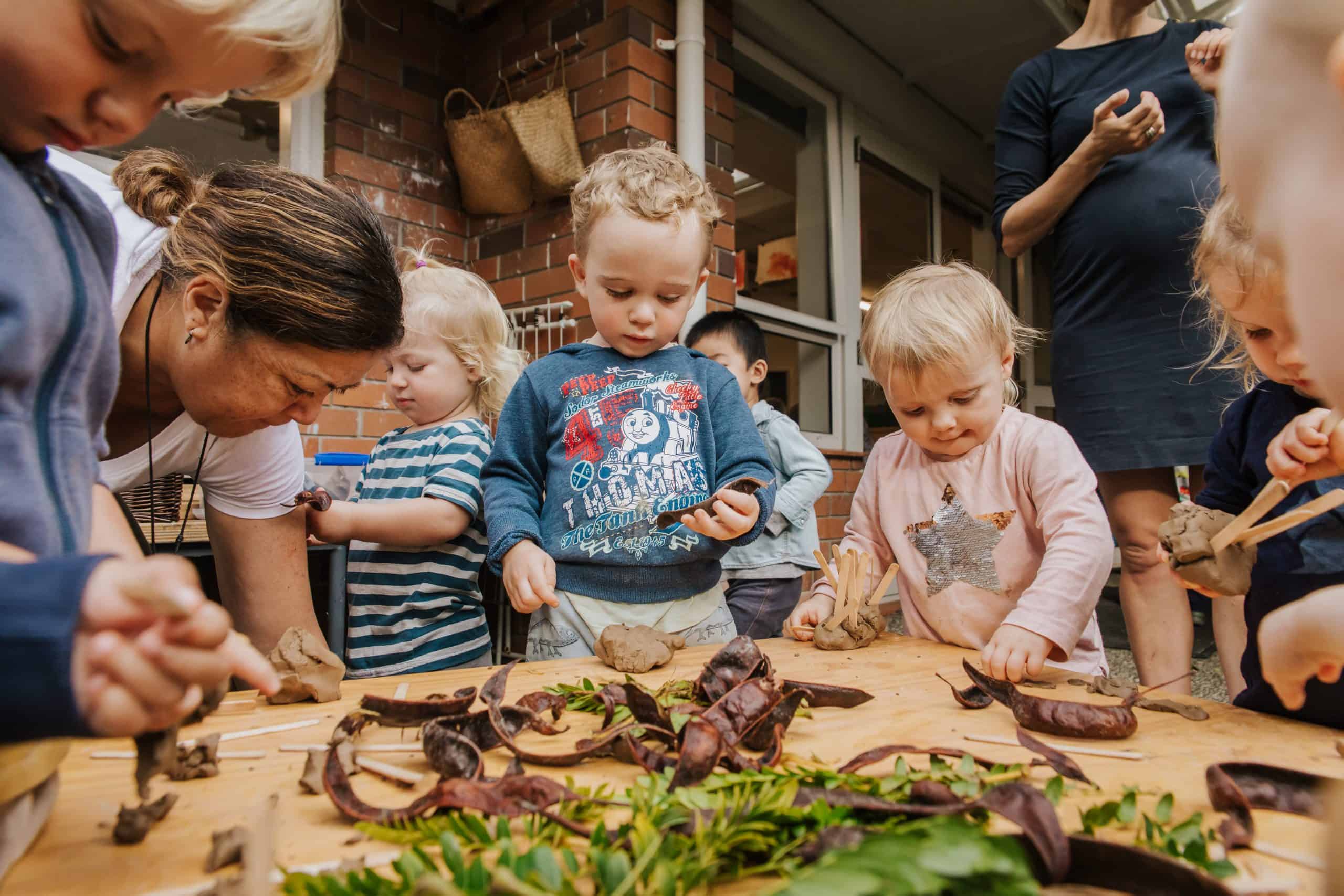 In their early explorations with clay or playdough, young children discover the properties of the material and experiment with the different effects they can create with different actions such as poking, pulling, pinching, squeezing, as well as the creation of texture on the surface of the clay. They also discover that clay can hold other materials upright.