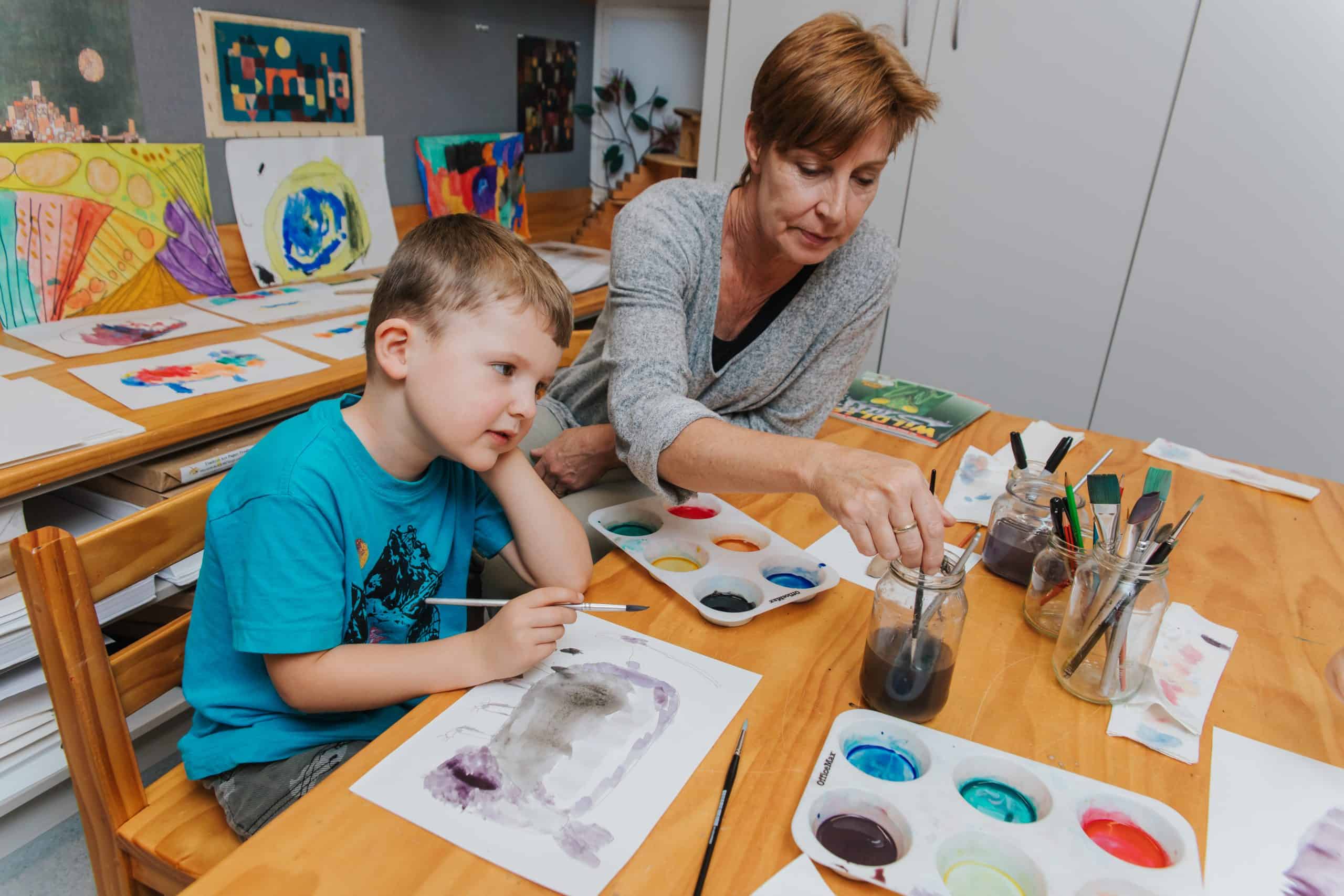 Teachers should share their knowledge and skills about producing artworks, offer guidance, and model visual arts skills[13]. For example, you might teach children how to use tools (such as viewfinders and brushes) and materials (clay, charcoal, mixed media and paint) as well as about artistic conventions (colour-mixing, tones, perspective, use of space). Children’s learning can best be extended when teachers provide scaffolding that is within each child’s individual zone of proximal development[14]. This means being aware of where children are in their learning, and teaching them something that is just within reach (proximal) or an appropriate extension.